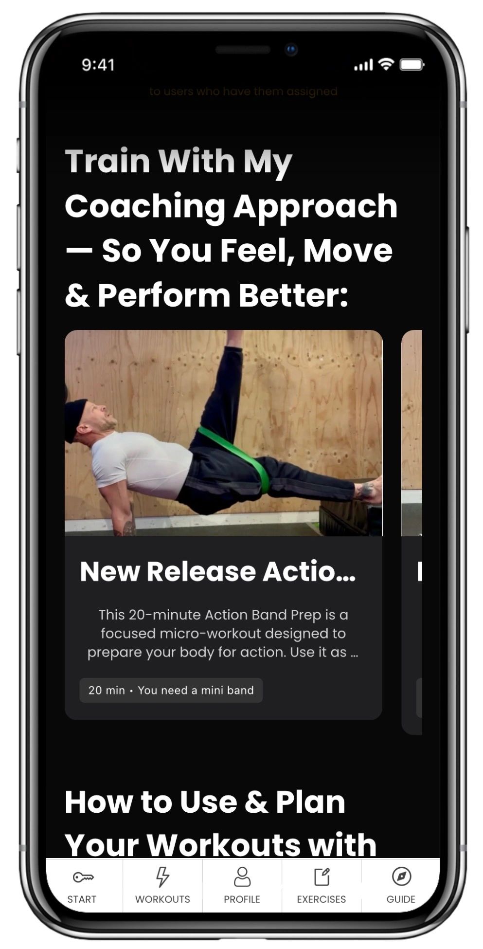 This app was built from years of coaching real people not trends, not shortcuts. What started as custom PDF programs has evolved into a complete training platform designed to help you feel better, move better, and perform better in real life.